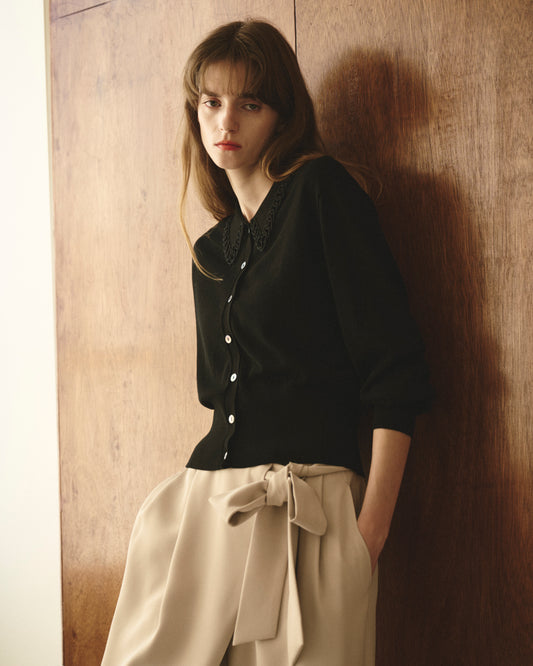 Saleコードエンブロイダリーカラーカーディガン