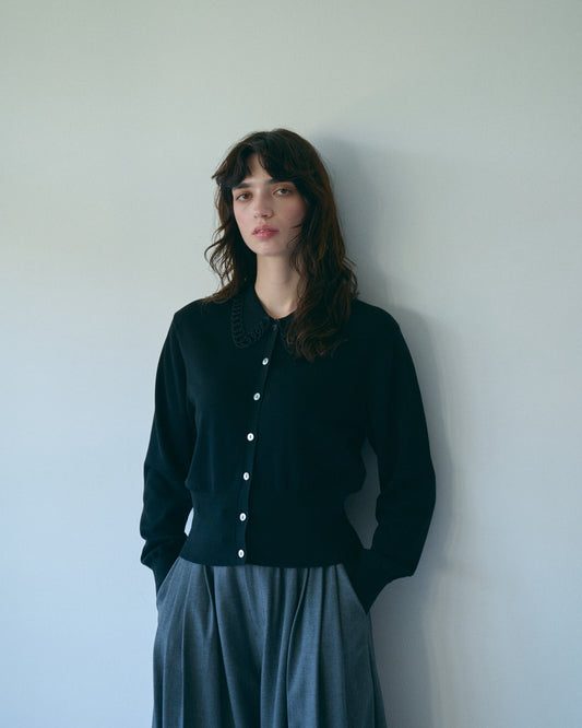 コードエンブロイダリーカラーカーディガン