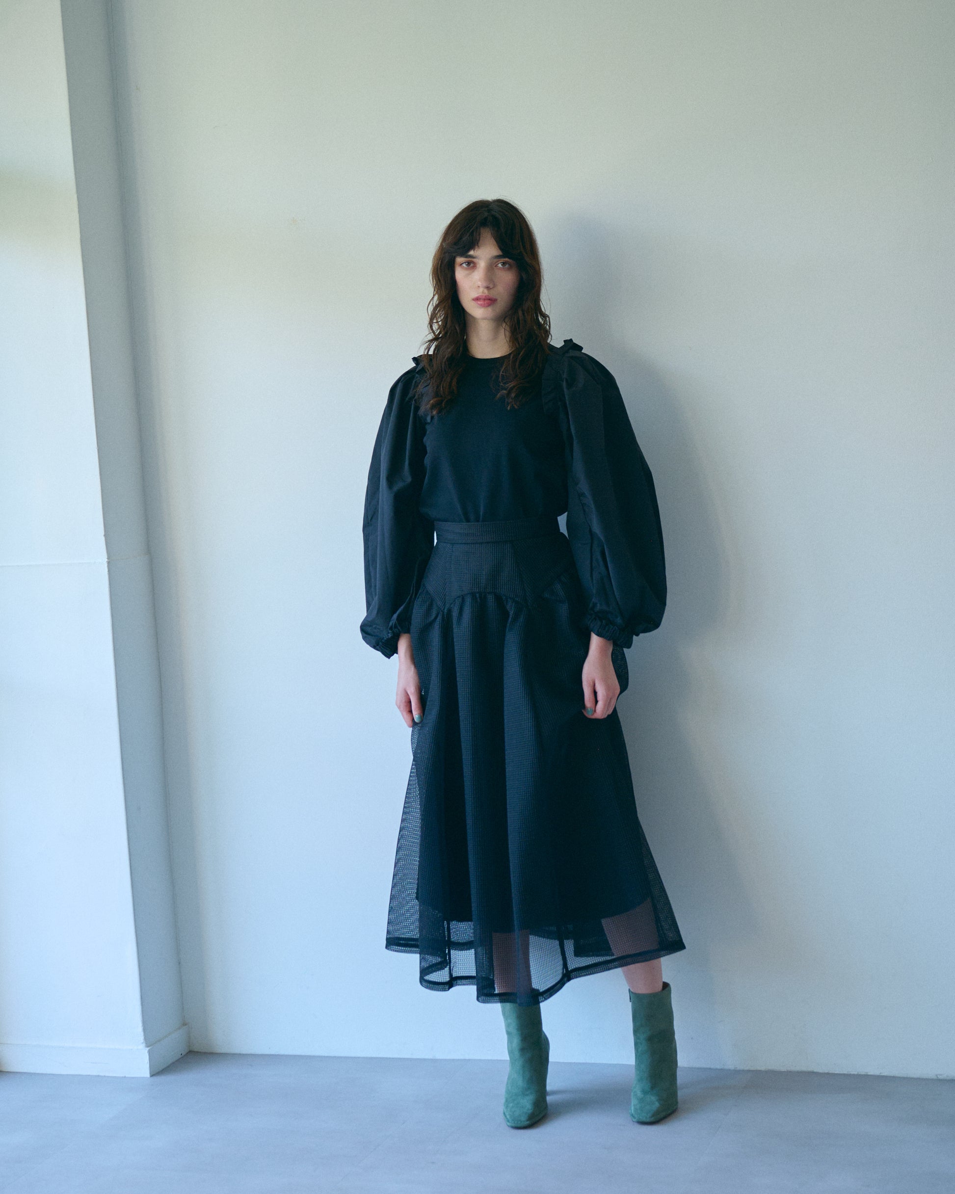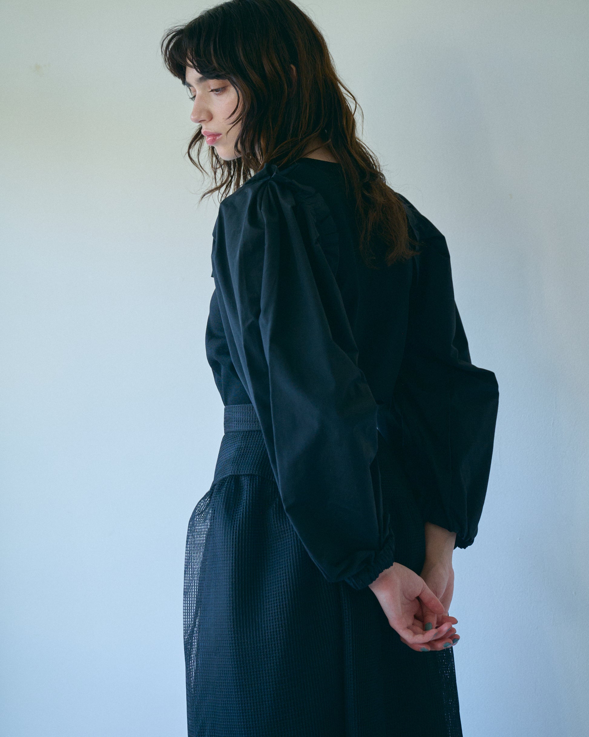 肩のタックフリルがポイント。肩が華奢に見えるように肩を内側で切り替えたりと、計算されています。