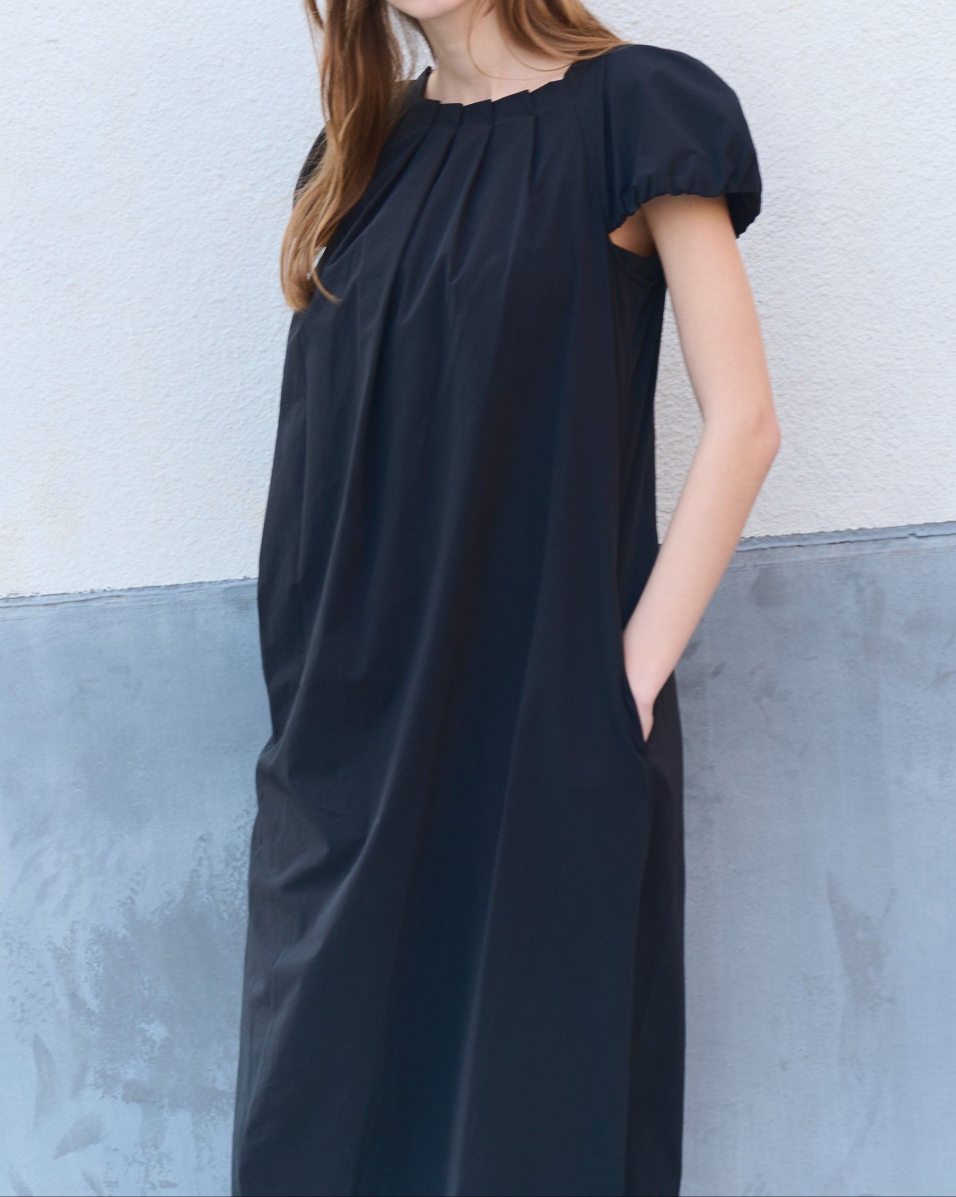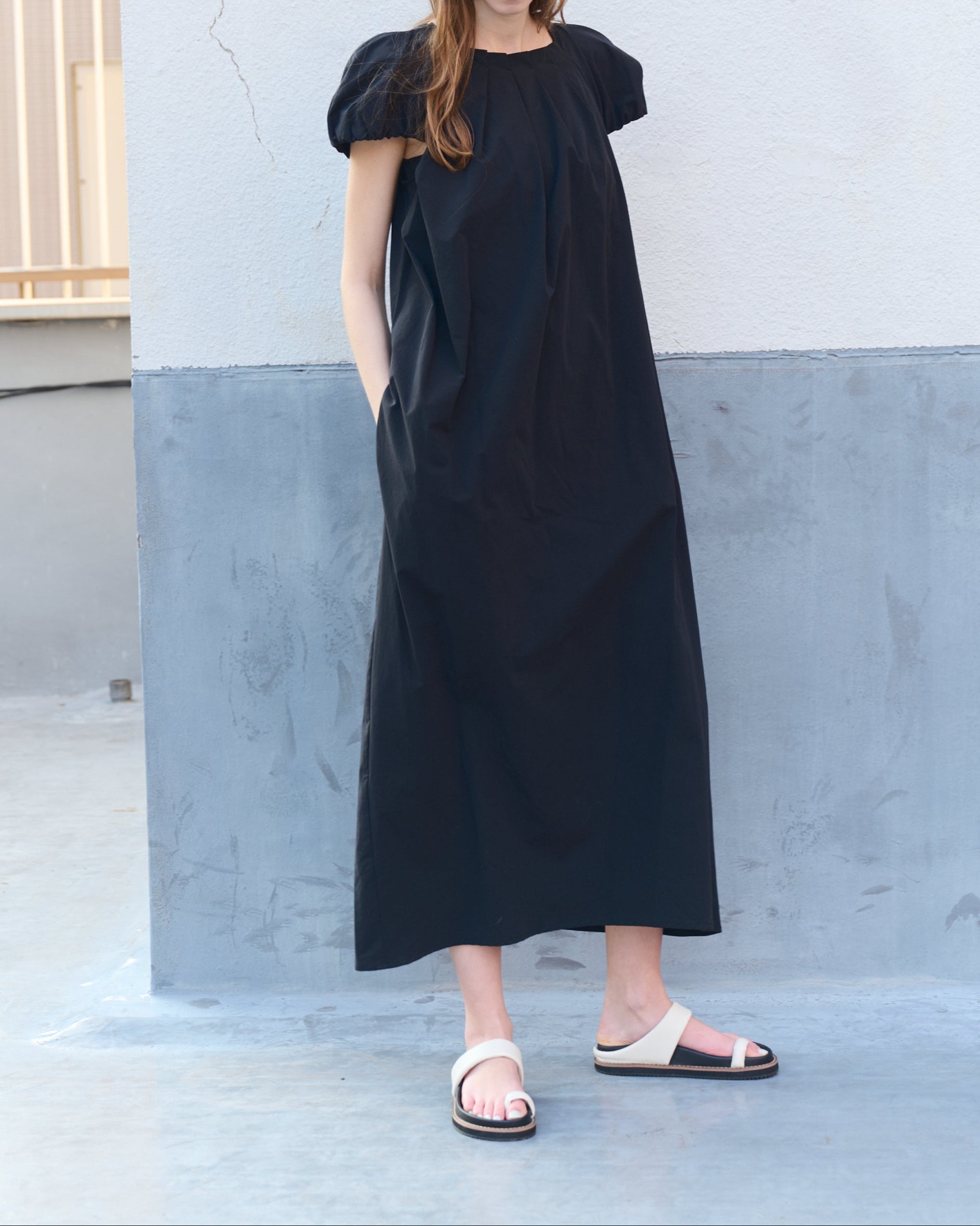 ドレーピングで作られたシルエットに拘ったストレートのワンピースです。