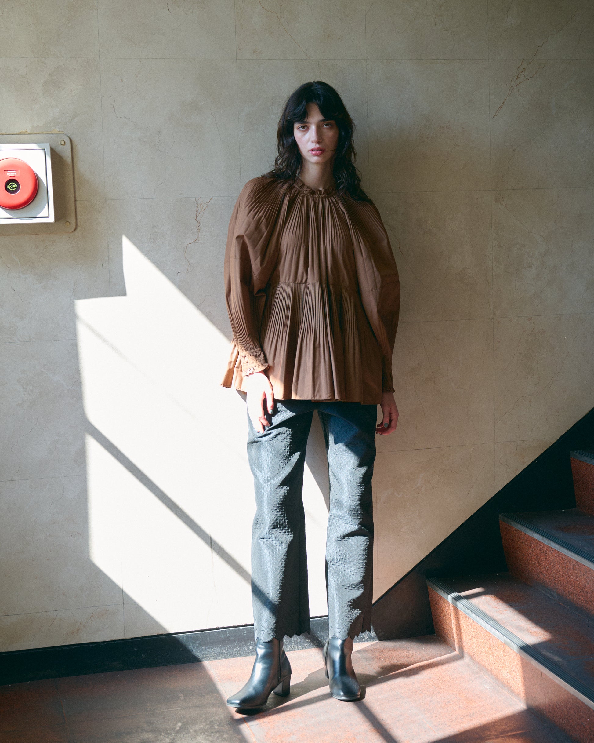 同素材のエンブロイダリーヘムジャケットと合わせてセットアップとしてお使いいただけます。Tシャツやスウェット等カジュアルなコーディネートでデイリー使いはもちろん、ブラウスやシャツに合わせてフォーマルな着こなしもおすすめです。