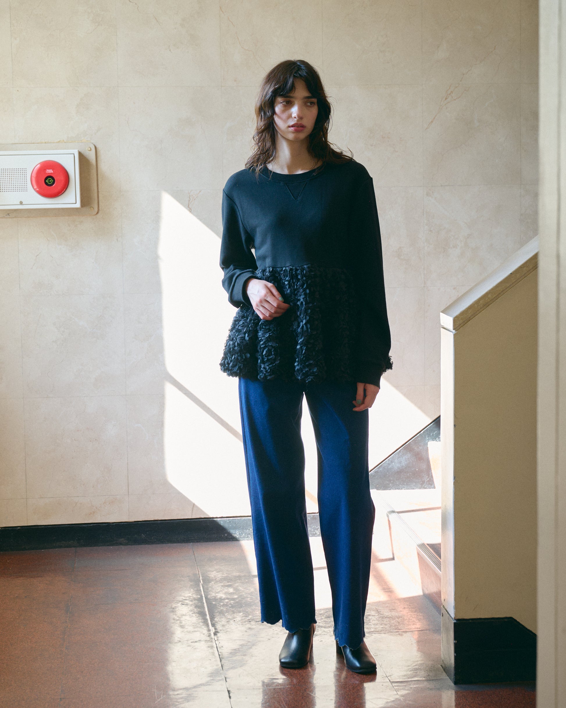 13オンスのしっかりした肉感のデニムを使用。ワンウォッシュで表面の加工感は抑え目にしているのでクリーンな印象で着用いただけます。